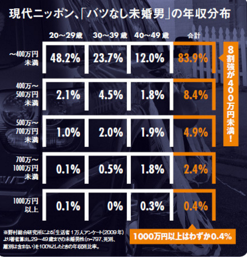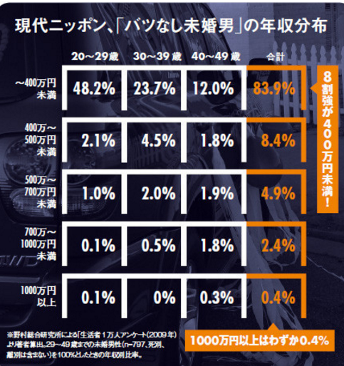 年収400万以上って確か全体の3割ぐらしかいなかったってデータあったな。