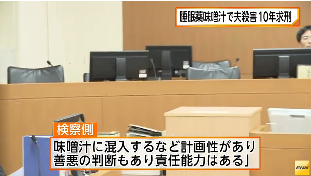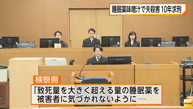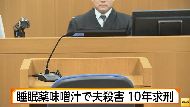 睡眠導入剤入りのみそ汁で、夫を殺害した罪に懲役10年が求刑された。