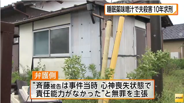 弁護側は、斉藤被告が事件当時、心神喪失状態で責任能力がなかったと無罪を主張していたが、3月1日の論告で検察側は「致死量を大きく超える量の睡眠薬を被害者に気づかれないようにみそ汁に混入するなど計画性があり、善悪の判断もあり、責任能力はある」と指摘し、懲役10年を求刑した。判決は、3日に言い渡される。