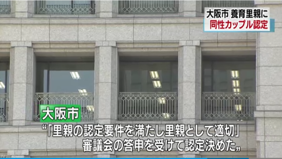 同性カップルを「養育里親」に認定 大阪市