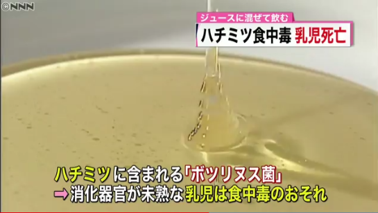 ハチミツには「ボツリヌス菌」が含まれていて、大人には影響ないが消化器官が未熟な乳児が食べると食中毒を引き起こす恐れがあるという。