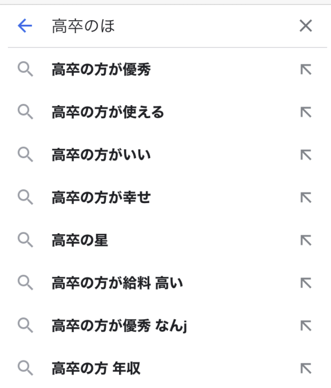 高卒のみでこれが出るならともかく「高卒のほ」は入力しすぎ