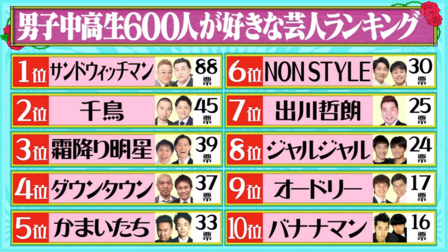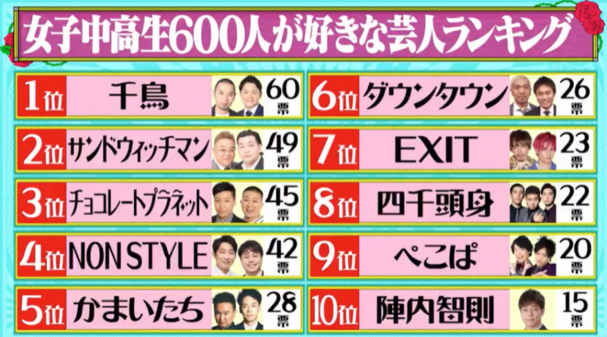 まあ妥当やな EXITとか四千とかぺこぱとかも妥当