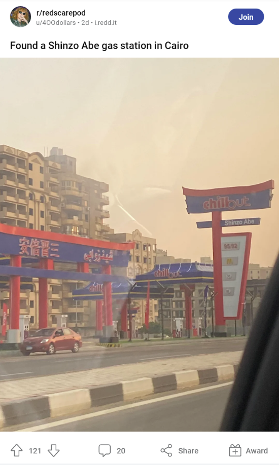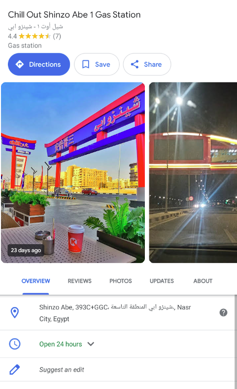 グーグルマップで「chill out Abe shinzo gas station」って調べると出てくる