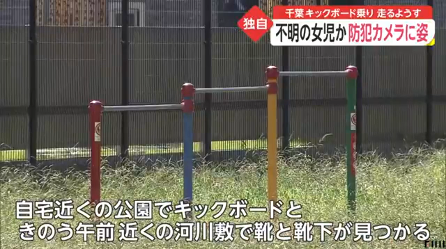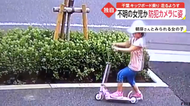 ・朝芽さんが、自宅を出た30分後の23日正午ごろ、朝芽さんとみられる女の子が1人でキックボードに乗って走る姿が、自宅近くの防犯カメラにとらえられていたことがわかった。