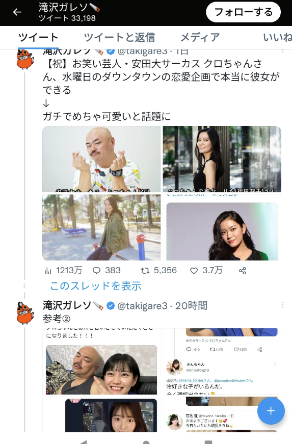 旬の本田さんとかタッキーのツイート1000万とかコンスタントに出しとる