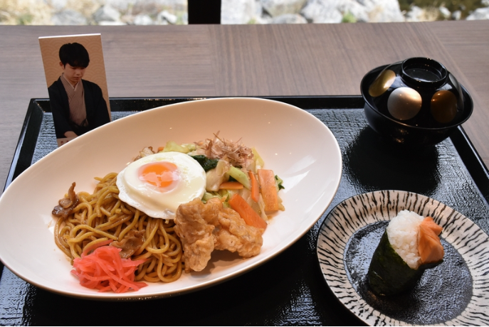 ・注目の勝負めしは藤井聡太王将=竜王、王位、叡王、棋聖=、挑戦者・羽生善治九段ともに「高槻野菜たっぷりソース焼きそば」を注文した。