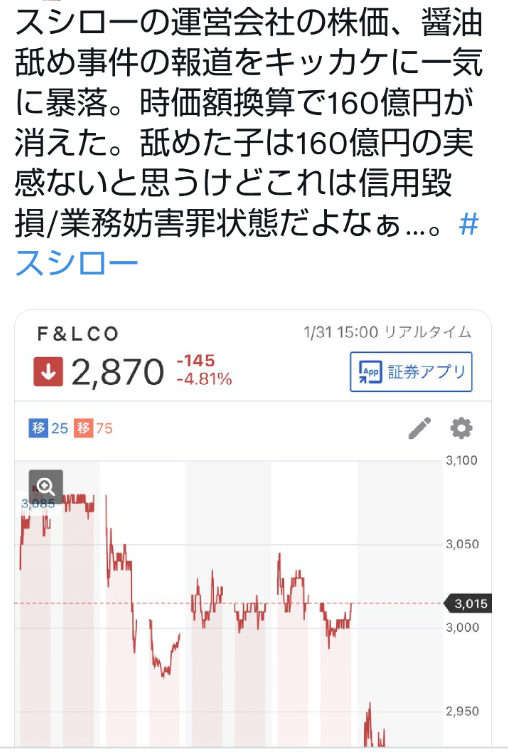 スシローの株"だけ"唯一持ってるワイ、無事死亡