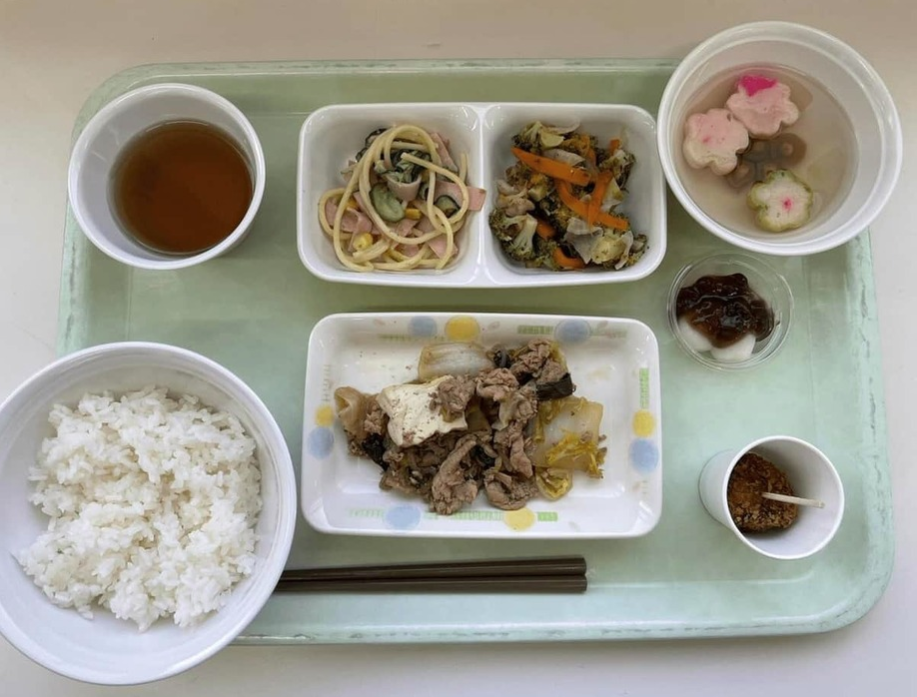 試食された給食。右下がコオロギ粉末を使ったコロッケ