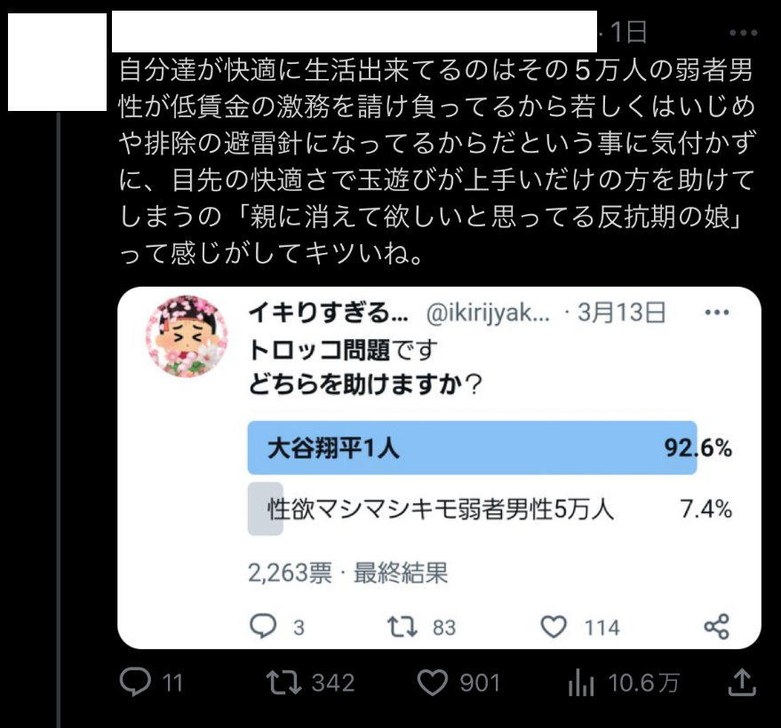 大谷関係なく弱男はマイナスの存在やから消す方向の方が世直しになるやろ