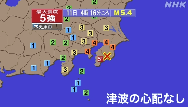 【千葉で震度5強 津波の心配なし】