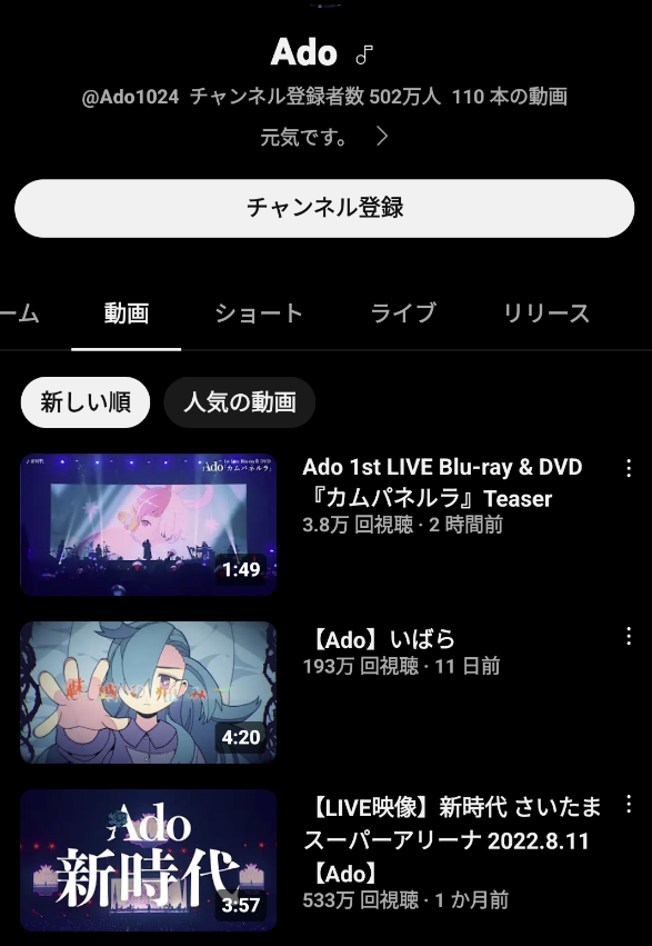 こどおじチー牛「ado終わってて草」