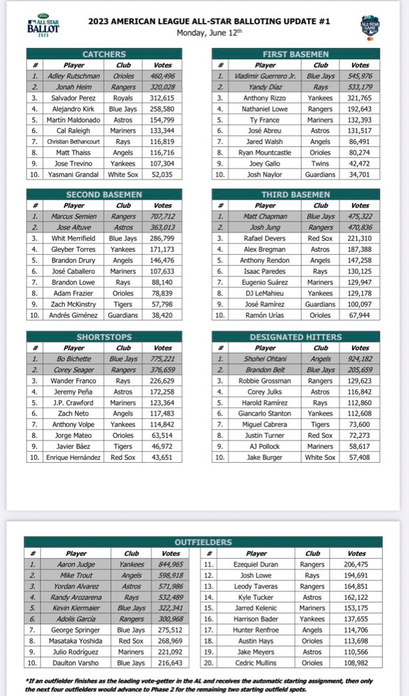 ・米大リーグ機構は12日(日本時間13日)、オールスター戦(7月11日、シアトル)のファン投票の第1回中間結果を発表し、エンゼルスの大谷翔平が、ア・リーグの指名打者(DH)部門で92万4182票を獲得して1位となり、リーグ全体でもトップに立った。