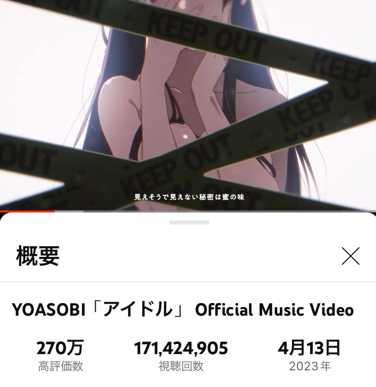 高評価数は夜に駆けるが300万、怪物が200万、アイドルが270万なんやな