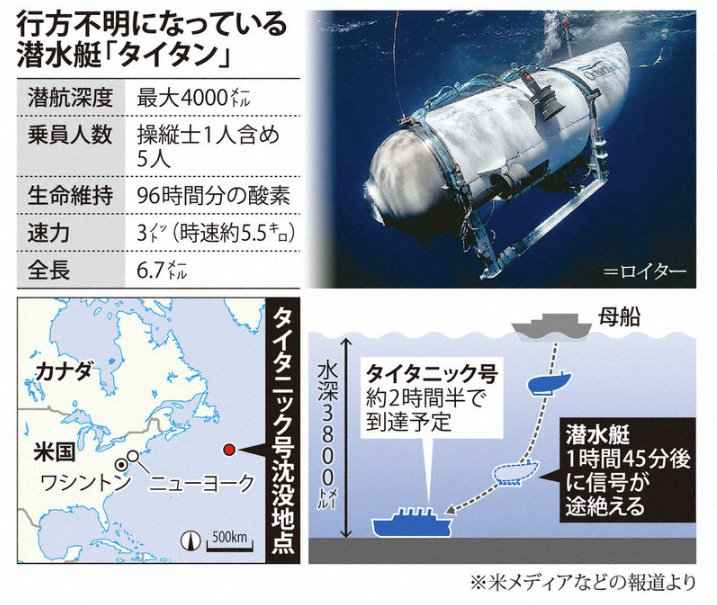 ・米海軍は、オーシャンゲートのタイタン潜水艇が連絡を絶った直後、「爆発音と一致する音」を検知したと海軍当局者が発表した。