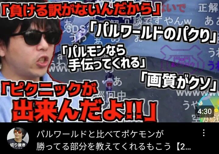 パルワ始めた時はコメ欄荒れてたのに今じゃポケモンやってたら逆に「劣化パルワールドやめろ」って荒らされるからな