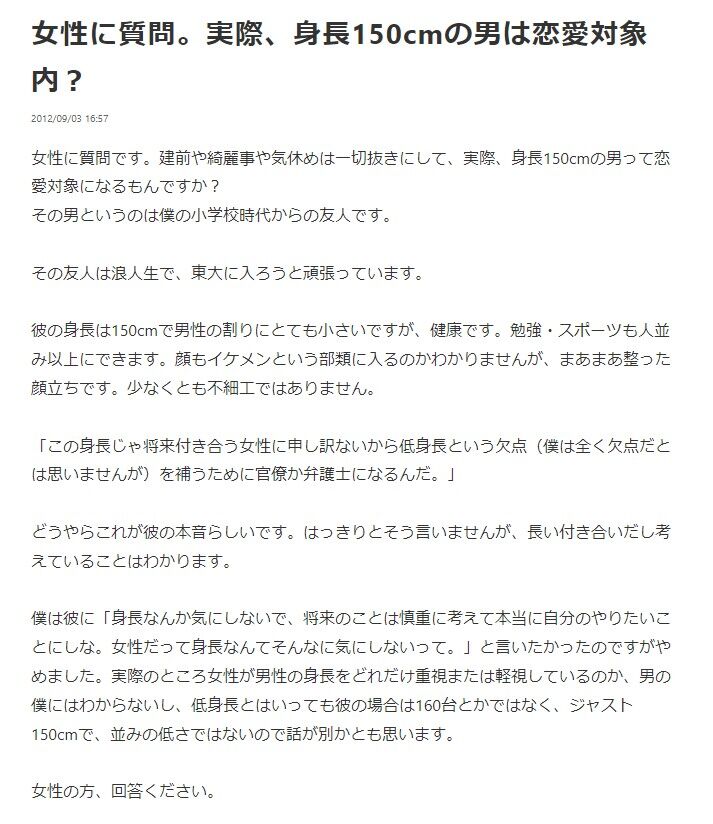 裏を返せば身長高ければそんなの関係ないって事になるのがなんとも虚しい